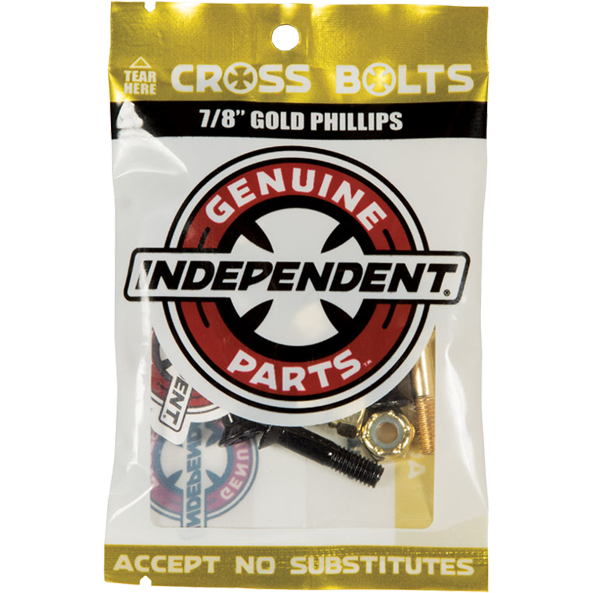 Additional Info: Each set contains 6 black bolts and 2 colored bolts. Genuine Parts Phillips hardware features cross logo heads, full size nylon lock nuts, full size bolt heads with Cross insignia, and extended unthreaded shafts for minimal board damage